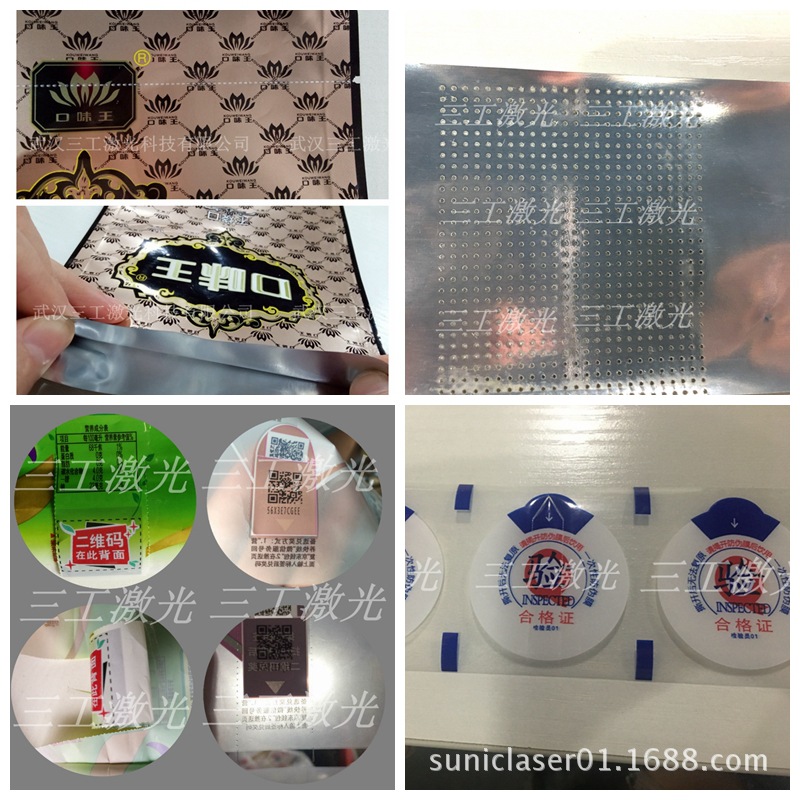 武漢三工激光包裝袋激光打孔機的優越性能,很好的適用于商品包裝上易撕線加工,效率高,穩定性好,操作簡單。消 費者通過包裝上“易撕線”很容易就能將包裝打開。這種包裝設計在開啟后對包裝具有破壞作用,在某種程度上防止了包裝重復運用,有效阻止了一些假冒產品重復 利用包裝的現象。該包裝 為創新的一點是撕下易撕條后盒蓋可以插入一個事先設計好的插孔中,且圖案能夠從表面上重新組成一個完整的產品,在一定程度上保持 了包裝的完整性。