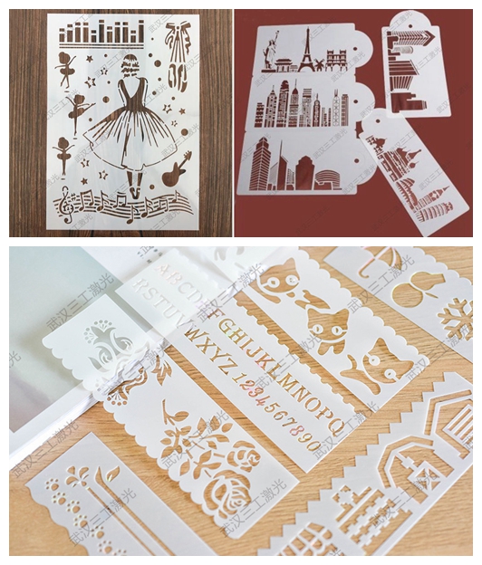 塑料繪畫模板是采用鏤空上色的原理,將塑料膠片中需要上色的部分進行去除,再在鏤空的地方進填涂上色。塑膠模板制作出的墻繪相對粗糙有質感,整體感更強、色彩更為凝重。繪圖模板激光鏤空機擁有魔法般神奇的加工效果。繪圖模板、賀卡、喜帖等傳統加工方式由于其耗時、不環保等缺點逐步受到淘汰,線條細膩,個性化強,精細度高、切口漂亮無碳化痕跡、速度快的繪圖模板激光鏤空,因其高效率、高精度受到廣泛青睞。