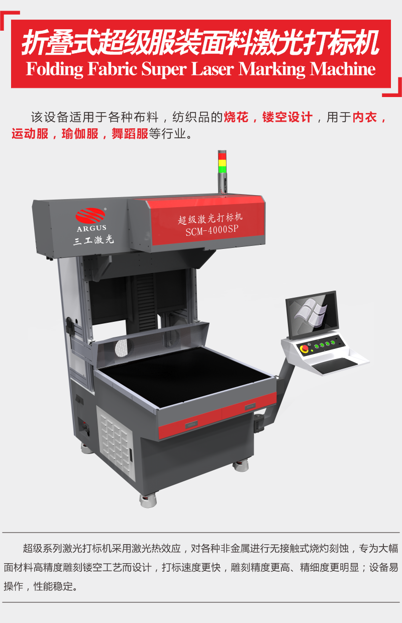 三工激光服裝加工打標(biāo)機(jī)的特點(diǎn):