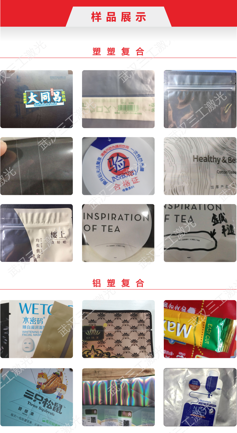 適用材料:適用于各種薄膜材料打標,如PVC、PET、PE、多層符合薄膜等表面的激光連續易撕線,激光透氣孔等工藝。