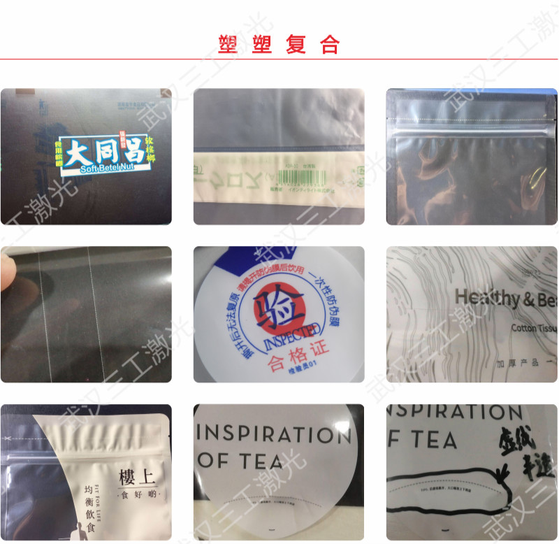 易撕線激光技術在軟包裝袋上根據需求進行切割虛線,其加工方法是利用激光器產生的光束,通過聚焦在設計好的易撕線處均勻的切割出一條深僅若干微米的細線,該線破壞了復合膜的外層包裝,保留內層包裝,既不破壞包裝功能,又使撕裂時可以規則地沿易撕線撕開包裝袋口,而且設備具有自動定位功能!能夠應用在各類OPP、塑料、鋁箔 、防靜電/屏蔽袋、抽真空袋、鋁箔面膜、寵物雜糧袋、25KG塑料粒紙鋁塑復合袋、微孔紋真空袋、建材包裝袋、防潮袋、封口膜等領域中。