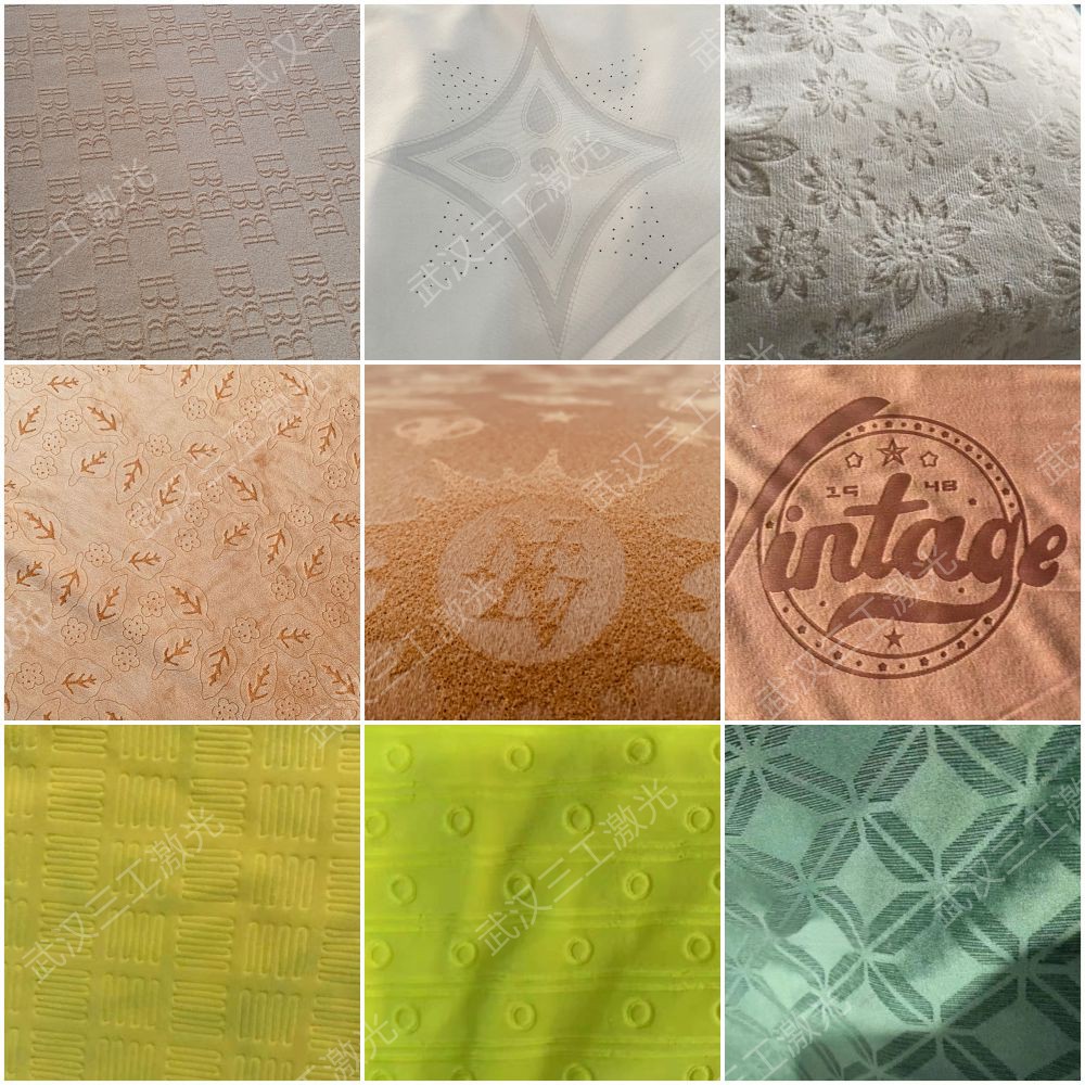 激光雕花,通過穩(wěn)定的激光能量控制和精確地掃描系統(tǒng)的配合,在布料表面進行熱加工,形成深淺不一的各種圖形,主要適用于面料紡織染色后整理,例如應用在家紡、鞋材、玩具上面的經(jīng)編短絨布以及應用在服裝面料上面的梭織布、牛仔布的雕花,應用在內(nèi)衣、運動服、健身衣上面的緯編針織布的雕花和打孔。