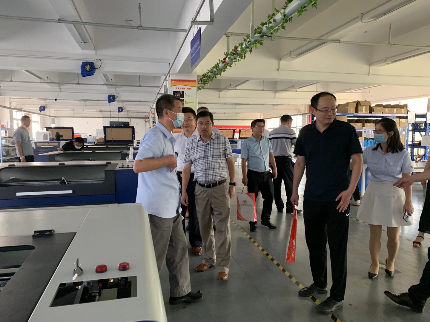 在武漢三工副總胡巨事的陪同下,考察團(tuán)參觀了公司智能焊接裝備研發(fā)、超大幅面布品激光燒花機(jī)、激光動(dòng)態(tài)打標(biāo)機(jī)、激光調(diào)阻機(jī)、激光雕刻切割等項(xiàng)目和生產(chǎn)車間,考察團(tuán)對(duì)超級(jí)紙品激光鏤空機(jī)、激光調(diào)阻機(jī)高精度、高速度的性能給予贊賞。
